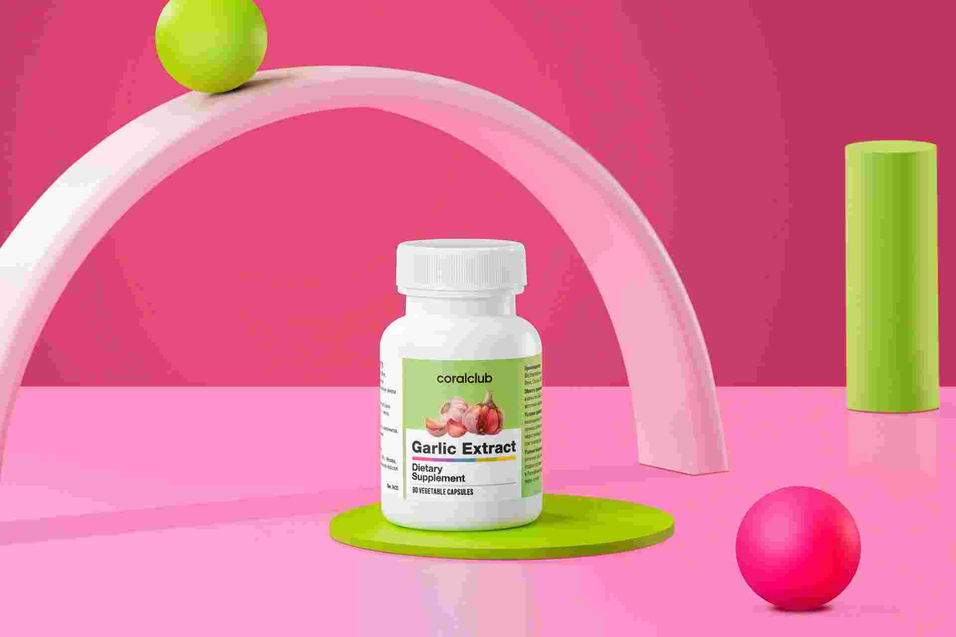 ķiploka (Allium sativum) sīpolu ekstrakts, kapsulas apvalks (apjoma palielinātājs hidroksipropilmetilceluloze), vidēja garuma ķēžu triglicerīdi (MCT) (no kokosriekstu eļļas).