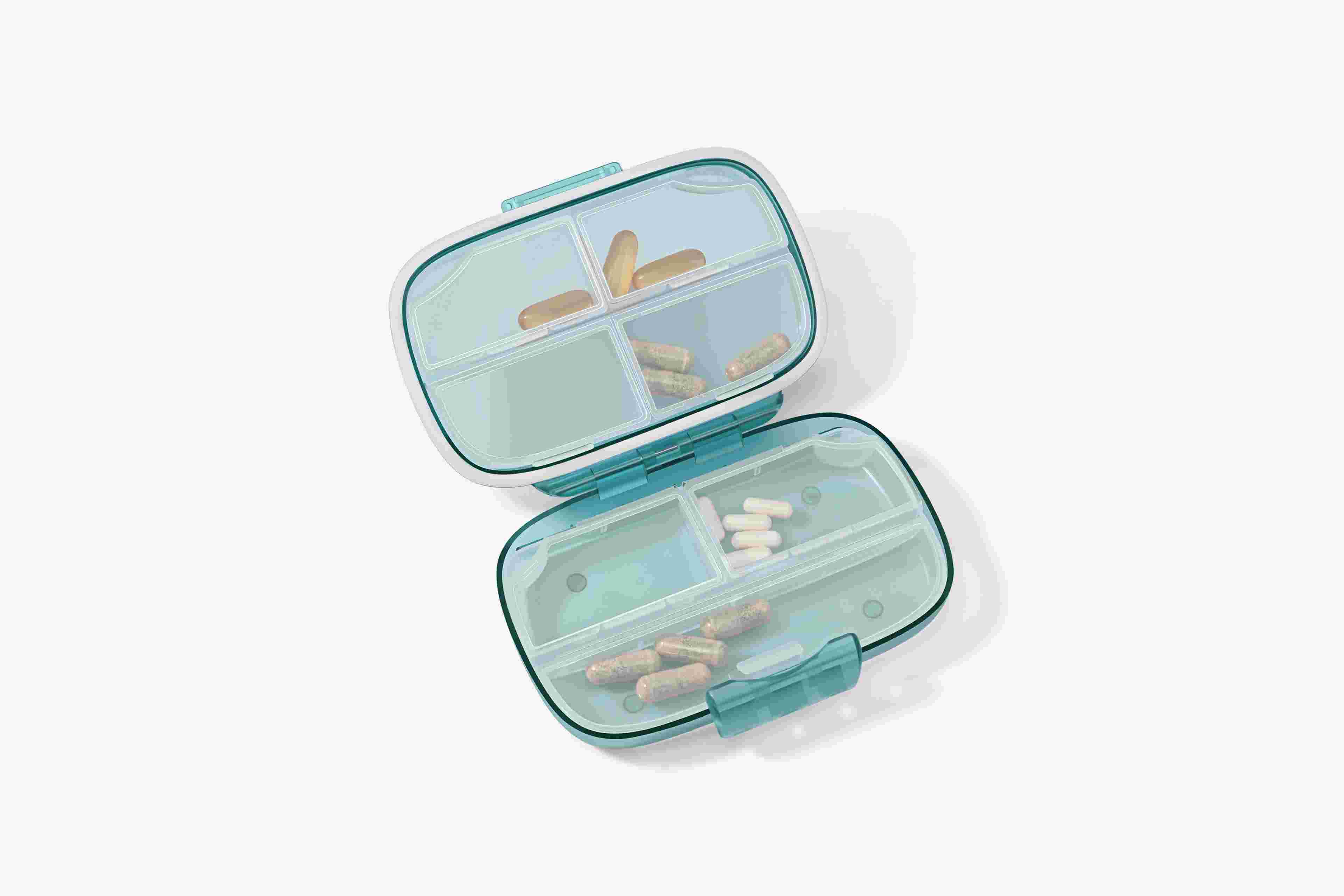 Stilīgā tablešu kastīte ir ērti ievietojama pat nelielā rokassomiņā, un vajadzīgie produkti vienmēr būs pa rokai.