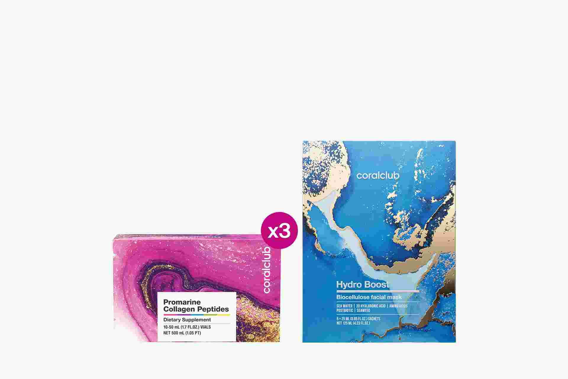 Promarine Collagen Peptides (1 mēneša kurss)  & Hydro Boost Biocellulose Facial Mask (5 sašē paciņas)