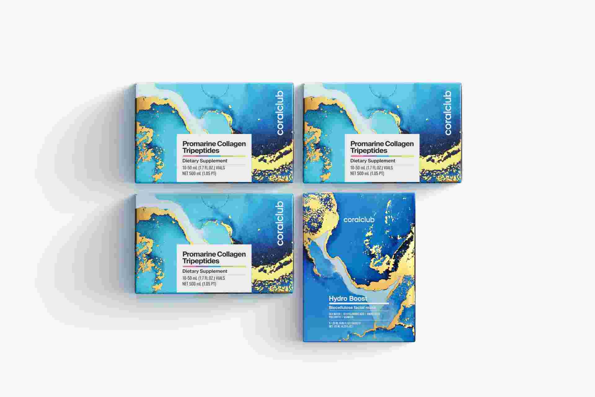 Komplekts Promarine Collagen Tripeptides (1 mēneša kurss) & Hydro Boost Biocellulose Facial Mask (5 sašē paciņas)
